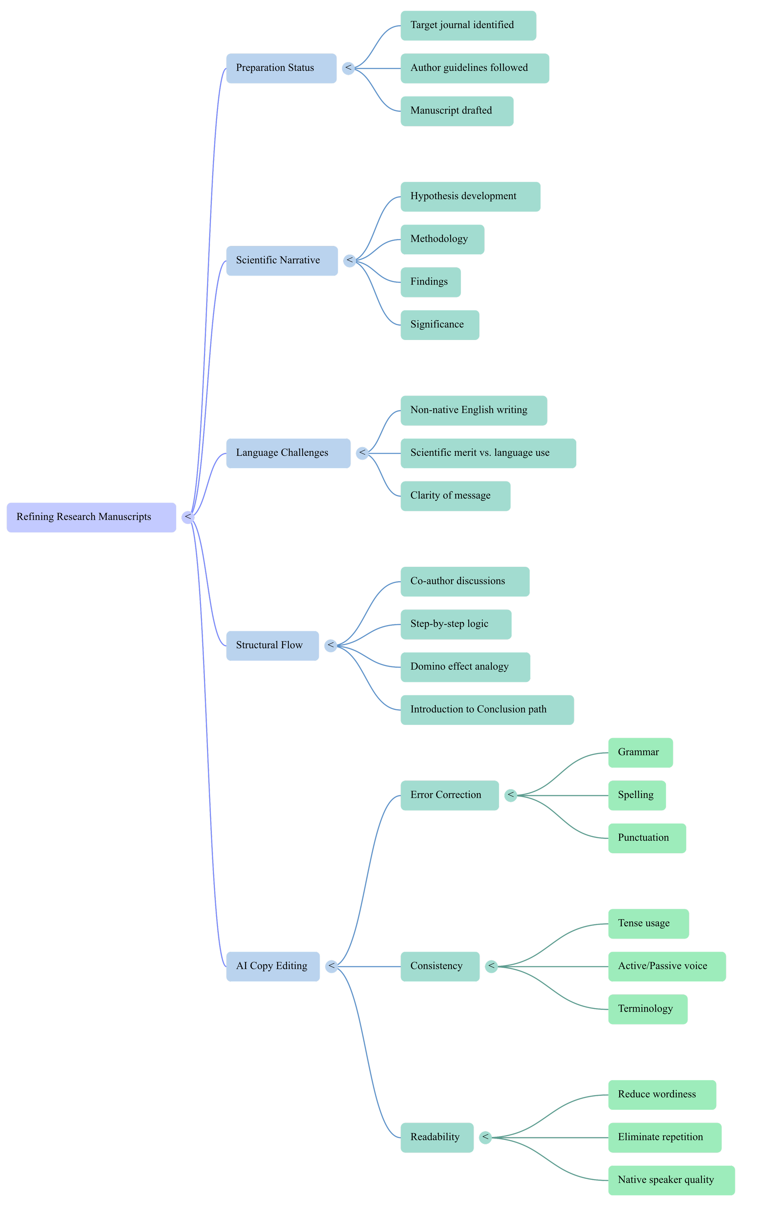 If you haven’t done it already, discuss with your co-authors how the information in your manuscript flows step-by-step from the introduction through the methods, results, discussion, and conclusion. Use the diagram on the home page of the Website as a reference. After all, “a picture can be worth 1000 words,” Visualize your message as paragraphs lined up like a circle of dominoes. If you tip the first one over, it starts a wave that ends when the last one falls over. After you are sure that your manuscript says what you mean in the best English you can write, ask your AI assistant to find and fix mistakes and correct them. It can check grammar, spelling, punctuation, and consistency. It can standardize tense (past and present) and voice (active and passive), and tighten sentence structure. It can improve clarity and readability by reducing wordiness and repetition. The result is a manuscript that reads like one written by a native English speaker. You will get the best results by asking for an "academic" style and settings that “reduce wordiness” or “word count," “make concise,” and “improve flow or fluency." Then do a final round of “language polishing” and proofreading. Try various apps until you find one that you like.